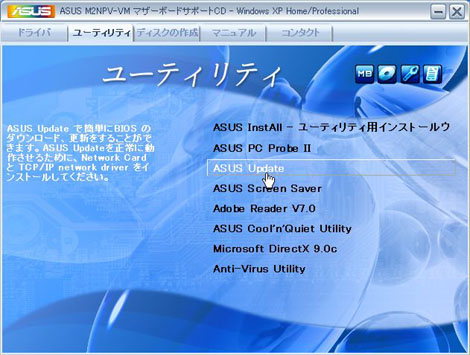 マザーボードに付属しているCDの中のBIOSアップデートツールを使う