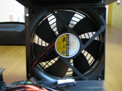 コンデンサやヒートシンク、トランジスタなどいろんな回路が見えています。右写真は冷却ファンです。元のファンが気に入らなければ、別のものに交換することも可能です。