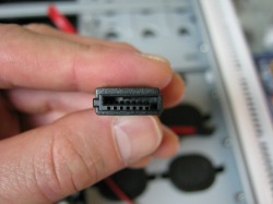 HDDだけでなく、光学ドライブやその他外付けドライブなどに使われているSerial ATA(シリアルエーティーエー)という規格のケーブルがありますね。