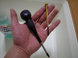 まず必要なものを準備しました! 水を張る桶・マジックリン・ドライバー太いのと細いの2本です!
