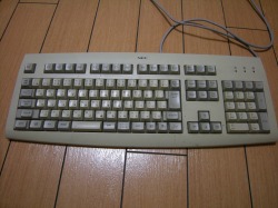 今回徹底洗浄するキーボードはこれ! NECのパソコンについてきたキーボードです。もうかれこれ5年以上は洗ったことがありません。実験体として最適です(笑)
