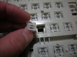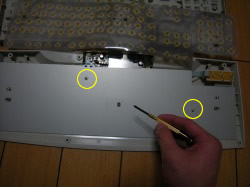 キーは細いドライバーではずれます。写真のように角をクイッと持ち上げれば簡単にとれます。テコの原理を使うと効率よく進みます。