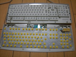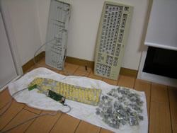 次にキーをはずしていきます!後で組み直すときにキー配列を間違えないように、 デジカメで写真をとっておきましょう!写真を撮り忘れると後でジグソーパズルみたいになります(^^;)
