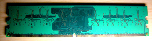 このメモリーは512MBと容量が小さいので、裏面にはほぼなにもついていません。2Gとかそれ以上になってくると両面実装という風になっていきます。