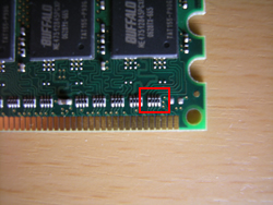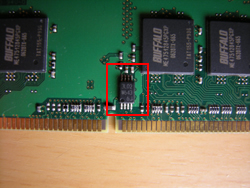 メモリーチップの種類・容量・動作周波数などの情報を記憶している部分です。パソコンを起動させると、マザーボードのBIOSがメモリーのSPDの情報を読み込んで、きちんと使えるようにしてくれます。