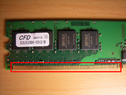 メモリーをマザーボードに接続する部分です。デスクトップPC用のメモリであれば240pin(ピン)。 ノートPC用のメモリであれば200pin(ピン)が主流です。